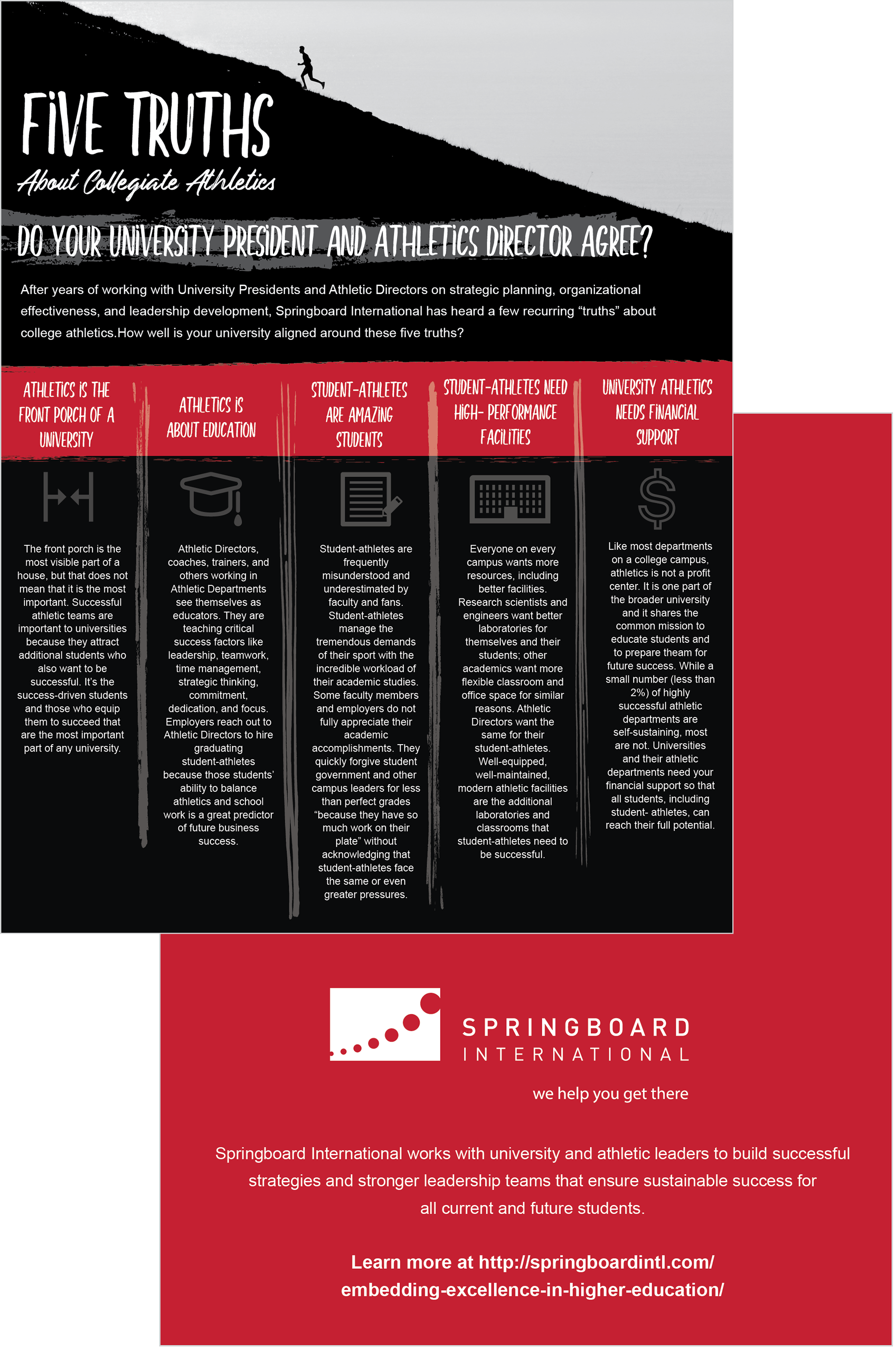 Digital PDF outlining Springboard International's "Five Truths About Collegiate Athletics".