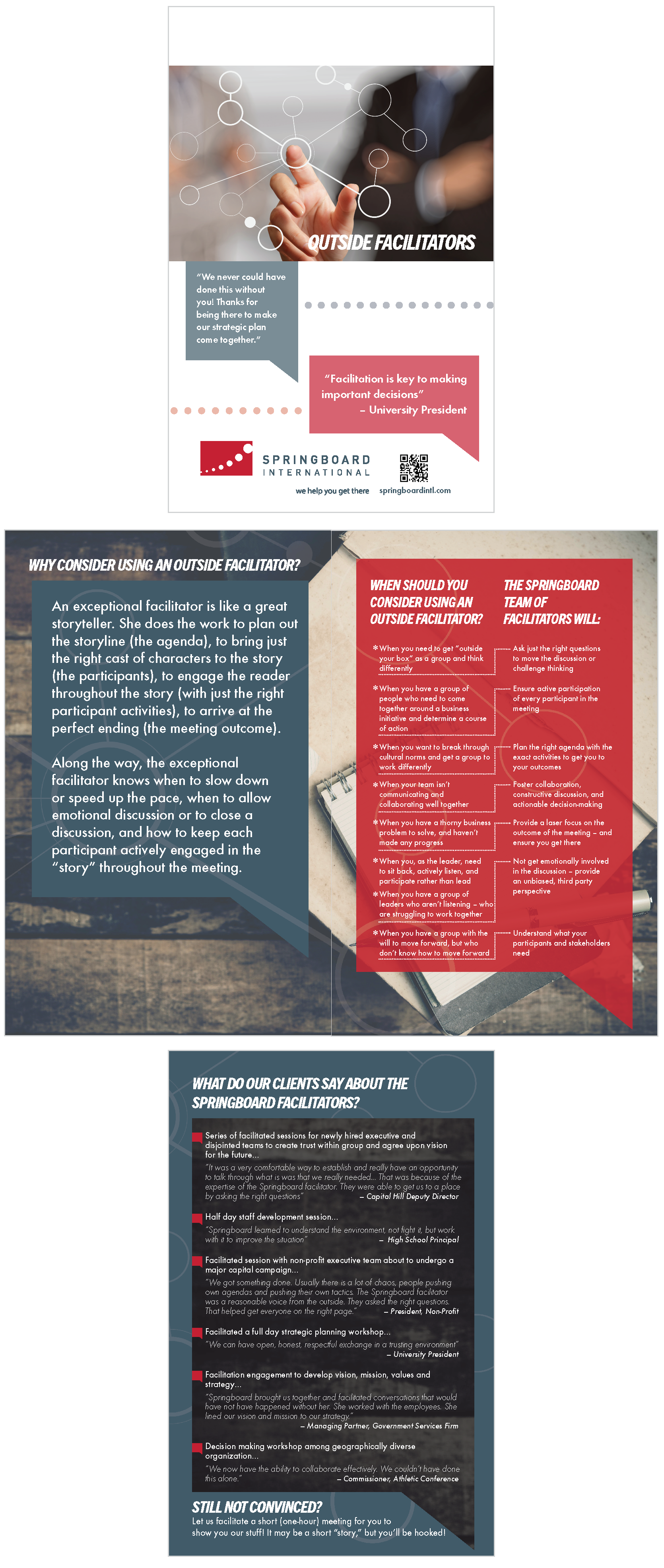 Booklet for Springboard International targeted toward schools and businesses who may be considering outside facilitators.